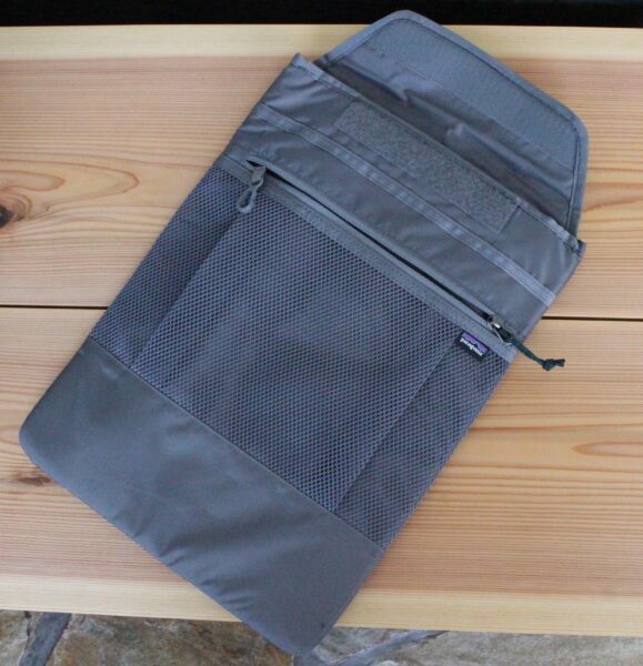 素材にはリサイクル・ポリエステルが採用されており、表面にはDWR(耐久性撥水)加工も施されています。急な雨でも中身が濡れにくく、アウトドアブランドらしいタフなつくりが感じられます。Patagoniaらしい、環境への配慮と実用性の両立が見られるポイントです。