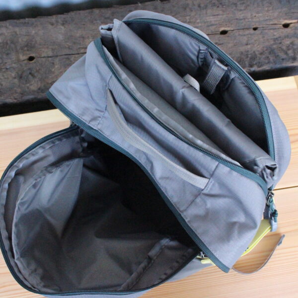 Refugio(26L)は、少し長めの日帰りハイクでも安心の容量で、レインウェア、ボトル、行動食、マップなどの基本装備が無理なく収まります。