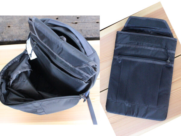 内部の構造はシンプルで、ノートPCスリーブ(13インチ対応)と、軽く整理できる仕切りが付いています。Refugioほど多機能ではありませんが、その分出し入れが素早くできる構造になっています。