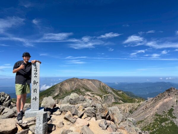 先月末に石川・福井・岐阜にまたがる白山(御前峰).標高2702mに私大野と先輩スタッフと二人で日帰り登山をして参りました。朝6時頃標高1200m程から登り、始め気温は10℃前後。やはりスタートはとても寒く感じました。殿ヶ池避難小屋方面のルートで向かい、樹林帯も早い段階で終わり青空が一望。道幅も1.5人分の道幅で身長178cmある私ですら登山道は狭く登りの足上げがきつく感じました。体を十分に動かしていく中で、体温も上昇しスタートとは裏腹に暑いと口ずさむ。汗が止まらない…。ベースレイヤーに半袖シャツ、ウィンドシェルジャケットで歩き始めましたが、早々にウィンドシェルを脱いで山を登り続けました。直射日光が当たる中、こまめな休憩と水分補給をしながら無理のないペースで山頂を目指しました。やはり化繊アイテムは速乾力が備わっており風も吹く中で汗をかいても直ぐに乾き汗冷えして体調を崩す事もなく無事に登頂出来ました。
