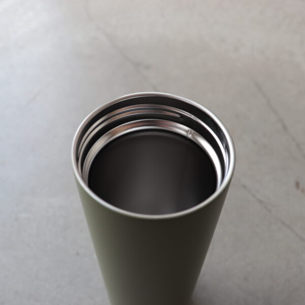 外側の加工だけでなく、内側にもメタルの臭いや味のしない18/8メディカルグレードのステンレススチールを使用しています。飲み物の味も変わらず、楽しむことができます。