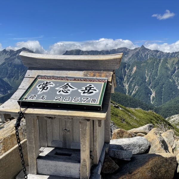 常念岳のピークからは槍ヶ岳をはじめとする北アルプスの山々を拝むことができました!やっぱりこの景色があるから登山はやめられませんね!