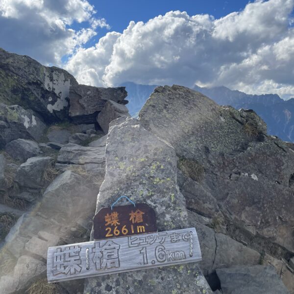 1日目は、三股登山口から常念岳へと向かい、蝶槍を経由して蝶ヶ岳ヒュッテで1泊しました。