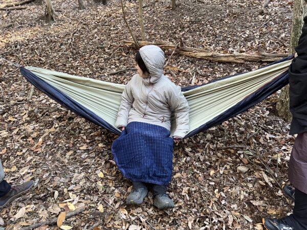ユニセックスモデルなので、女性の方にもおススメです。店頭では秋冬のハンモックの時に使いたい!という方や、お家で台所に立つ時に穿きたいという方、お子様のスポーツクラブで冬の体育館で見学している時に穿きたいという方など、使い方は人それぞれ。春秋シーズンにお子様用の寝袋に活用している方もみえます。