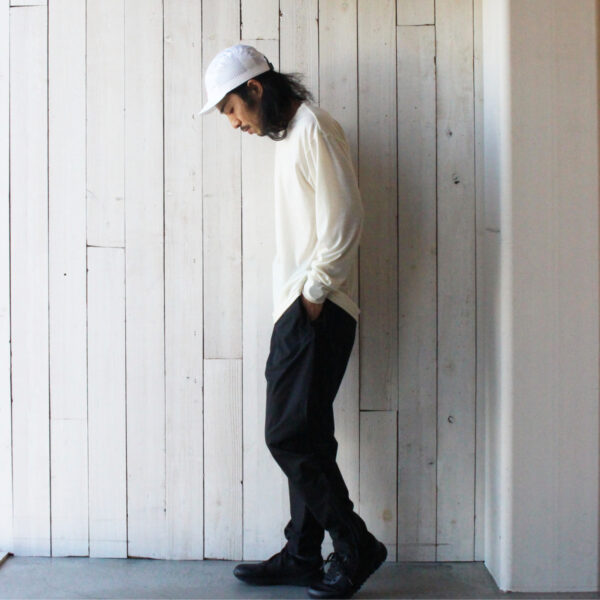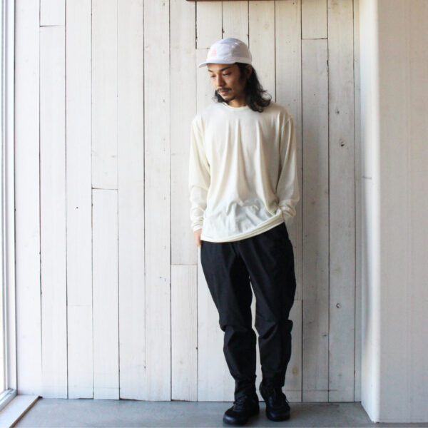 ウール特有のチクチク感も無く、非常にスベスベした肌当たりの生地なので超気持ち良く着て頂けます。なお、Sugarcane Long Pants はM’sとW’sの展開ですが、Smooth Wool Tはユニセックス展開となっています。