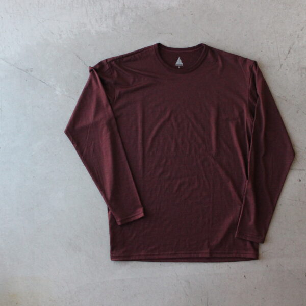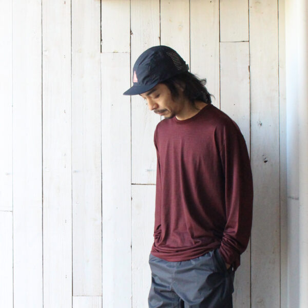 17.5ミクロンの極細糸で編み立てた長袖メリノウールTシャツ。ウール 100%の生地なので素材特有の防臭性や調湿機能をしっかりと発揮してくれます。