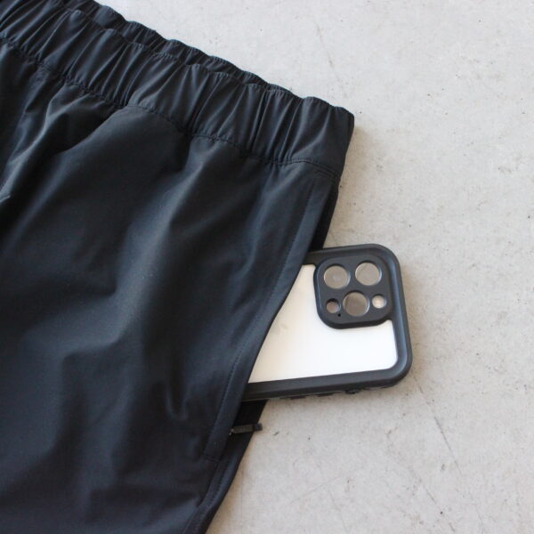 山を歩いたり、ランニングを楽しんだりした後にカフェに入っても違和感なく過ごせちゃう。なんなら日常着の主役にもなり得るパンツ。それぐらい動きやすくて、穿き心地も良いんです。ワタリ部分は日常着としても馴染むように太めにデザインされているので、言われなければスポーツウェアだと分からないぐらい。