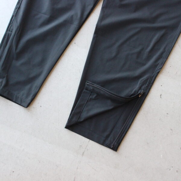 そして、この裾幅もポイント。ストイックに見えないシルエットでありながらも足さばきを良くする為に、この裾幅に設定されています。ちゃんと脱ぎ穿きの事も考慮してジッパーも配されているので、足を通すのに苦労する事もありません。