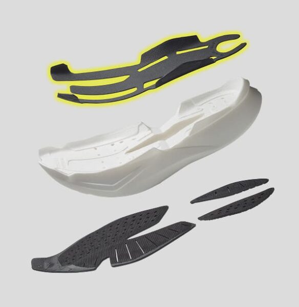 VECTIVシリーズはそのプレートを3D構造にして、Forwardに関してはより安定感を出す為に中足部にもしっかりとプレートが立ち上がっています。これにより、長い距離を楽に走れる安定性を生み出しているんです。
