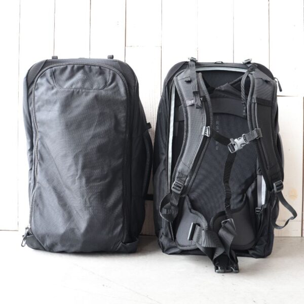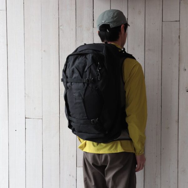 フロントから大きく開くメインコンパートメント、荷物の整理がしやすい内部構造、収納可能なショルダーベルトなどが特徴で、移動中は“バックパック”でありながら、宿に着くと“スーツケース”のような機能性を併せ持っています。