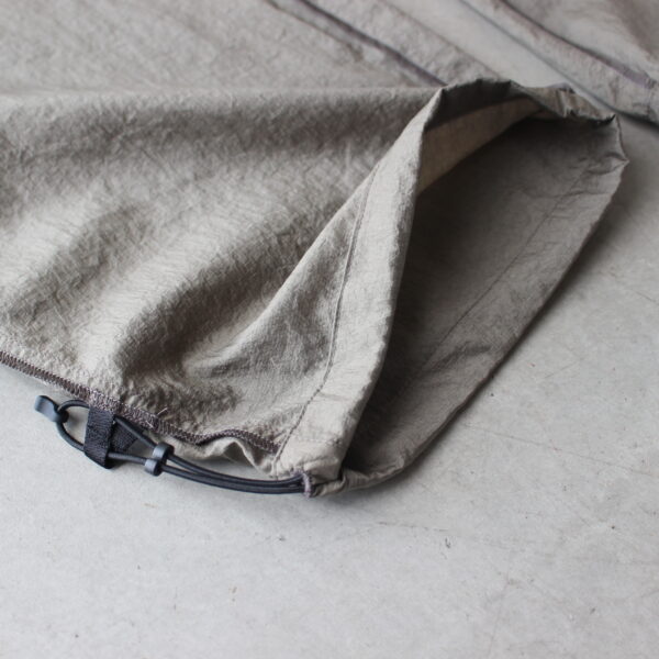 裾に備えられたドローコードによって、シルエットの調整が可能。絞ることで風の侵入を防ぎつつ、足元をすっきりと見せることができ、シーンやスタイルに応じたアレンジが楽しめます。