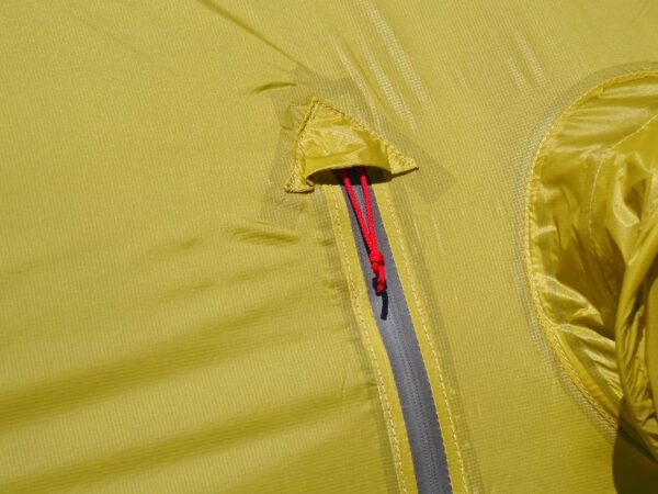 縦方向のセンターにはサイドリフターを設け、そこをペグダウンする事で耐風性の向上と居住空間を両翼で20cmずつ広げることが可能です。