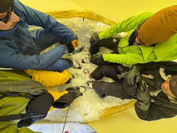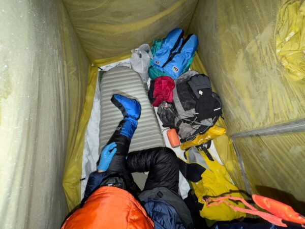 片付けも然りで、悪天時はシェルター内で完全に靴やゲイターなどを装着してから外に出られますし、天気の良い時はテントさえどかせば広々片付けが出来る訳です。(笑)