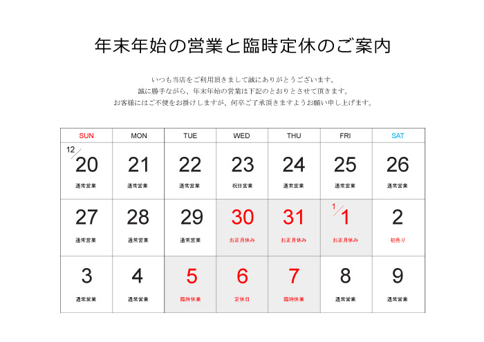 いつも当店をご利用頂き、誠にありがとう御座います。