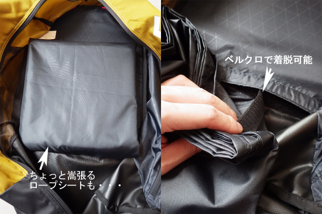 このバッグ、しっかりショルダー出来たり、ダッフル持ち出来たり、ショルダーやウエストのストラップを収納できたりと、キャリーの事もよく考えられている上、意外と中で嵩張るロープシートもベルクロで外せるので、全く関係の無い用途の旅行鞄や、ジム通い用のダッフルとしても非常にいい使い勝手を発揮します。