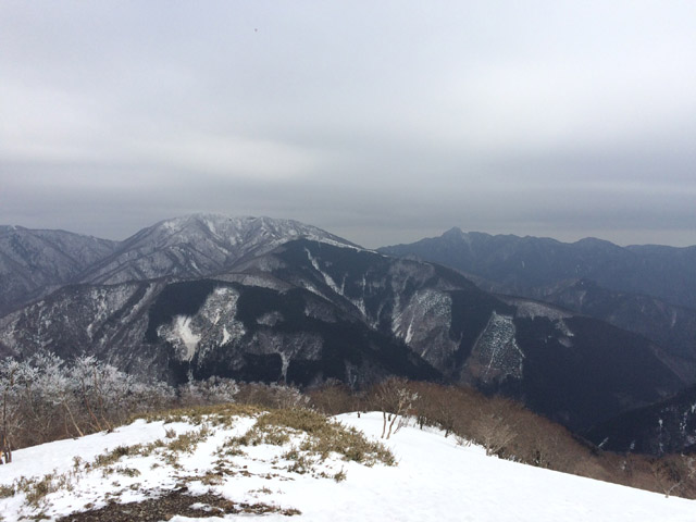 生憎、青空では御座いませんでしたが、山頂からは雪化粧の雨乞岳、鎌ケ岳など、
