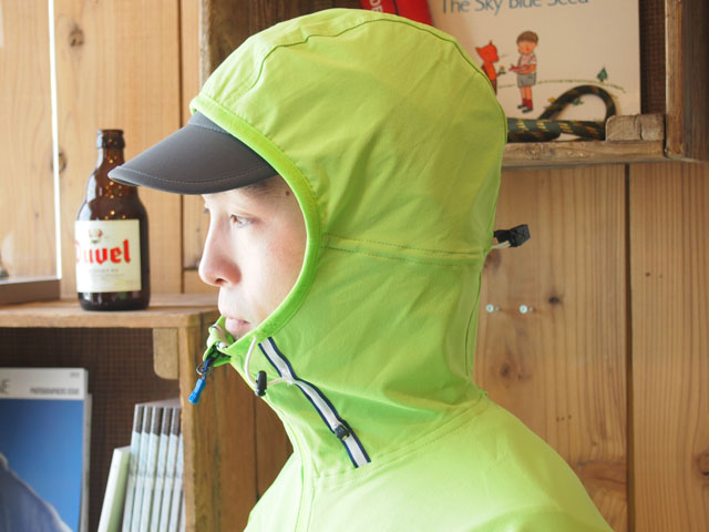フードは視界を遮らない形で行動中でも休憩中でも防寒対策として積極的に使えます。