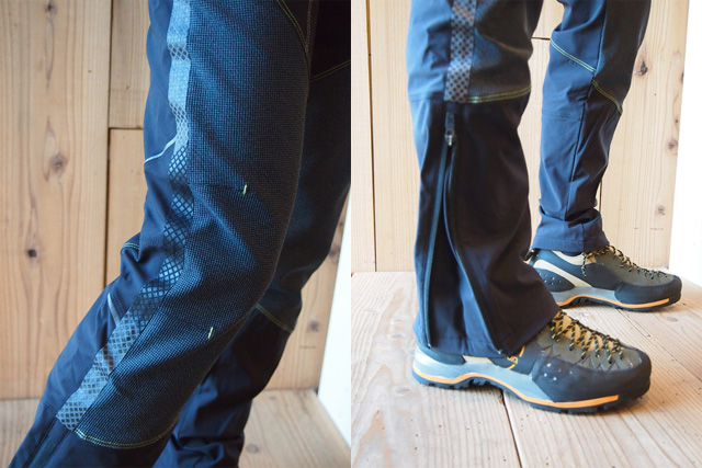 腿から膝下の切り返しは耐磨耗性に優れた素材で強度を高めています。
