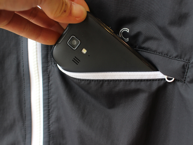 その下のポケットにはスマホが横向きに入れられ、ハンドウォーマーポケットも使い勝手のいい位置と容量があります。