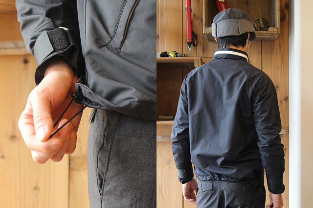 裾はドローコードで締められる上、ドロップテイルですので自転車に乗る際などには非常に有効。