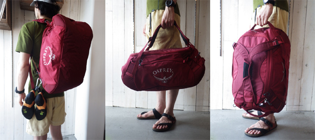 さて、スカルパの営業さんが実際に使っていた、代理店が同じオスプレーのダッフルバッグが非常にクライマーに良さそうでしたので、早速ご紹介します!