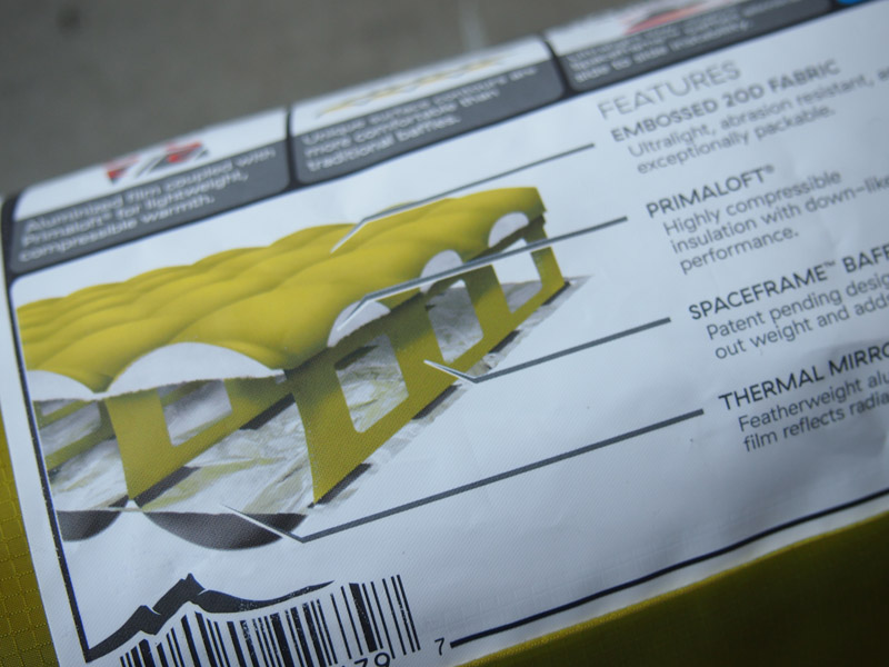 スリーピングパッドの暖かさの指数であるR値こそ公表していないものの、底面の内側にはしっかり断熱用のアルミシートが入っていますので、それなりの保温性能は期待できるかと思います。(薄く影になっている所)