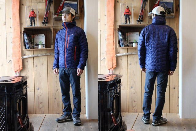 重量はMサイズで574.5gと決して軽くはありませんが、しっかり温かい空気層を作るマイクロバッフル構造を採用し、保温力の割にすっきりしたボリュームなので、ハードシェルとのレイヤリングもしやすくなっています。
