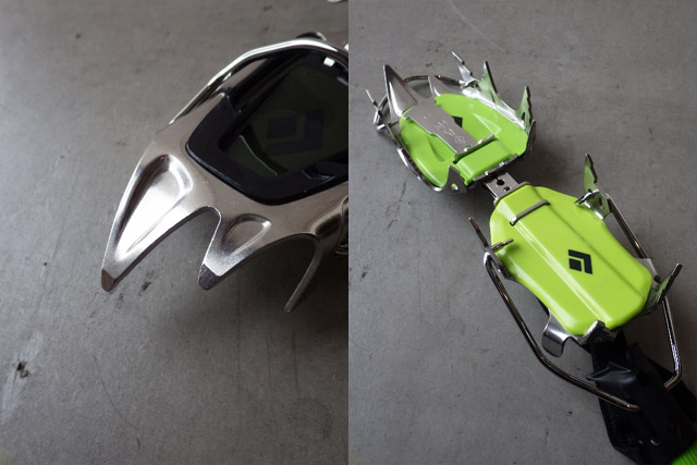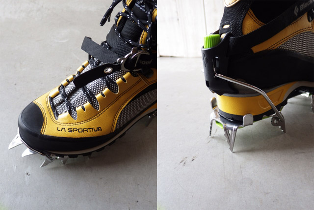 これはミックスルートでの扱いやすさを追求した結果、雪壁での支持力や岩場で立ち込みがし易い横歯のモノポイント(長い方の歯)と、雪上を歩行する際の支持力を高める為の短いセカンドフロントポイントとなっています。