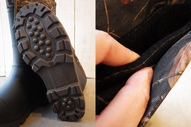 分厚いソールは地面からの冷気を断熱し、しっかりと雪面をグリップします。