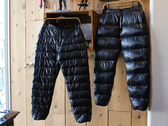 左から“Portable Down Pants”(⇒■)、“Super Light Down Pants”(⇒■)。