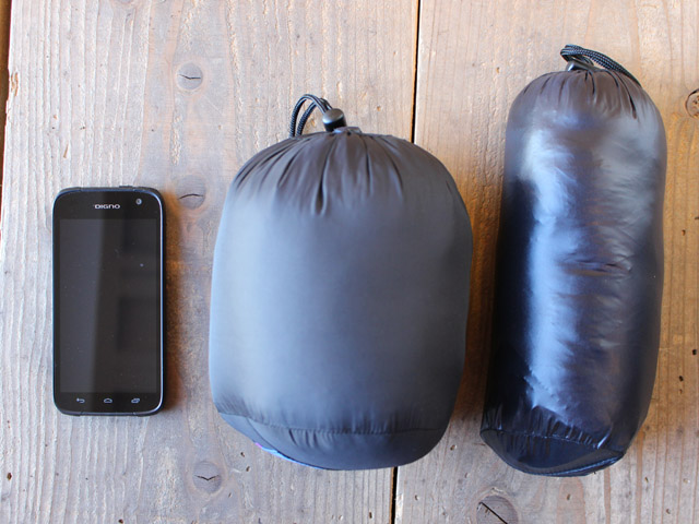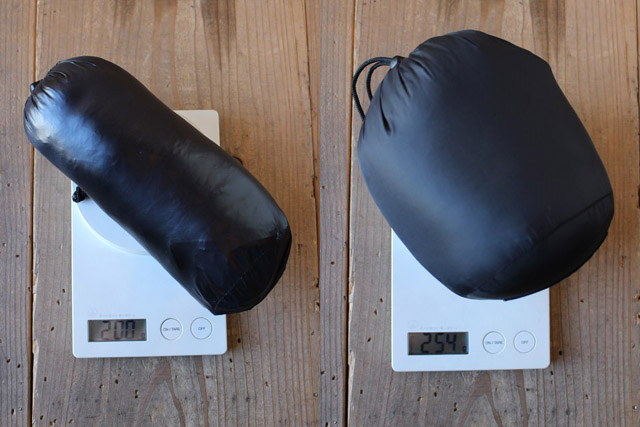 それぞれのスタッフサックに入れると、僅かですがポータブルの方が小さく、ザックの隙間に入れられそうな細長い形状になるので、パッキングもしやすそうです。