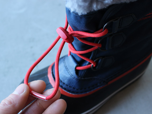 しいて言うなら大人向けモデルが靴紐なのに対し、キッズはドローコードに。