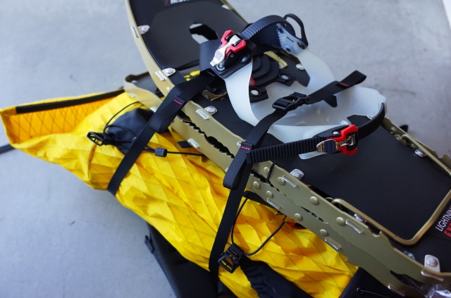 メッシュと比べ、スノーシューなどを取り付けたり、アイゼンを一時的にポケットに収納したりしても