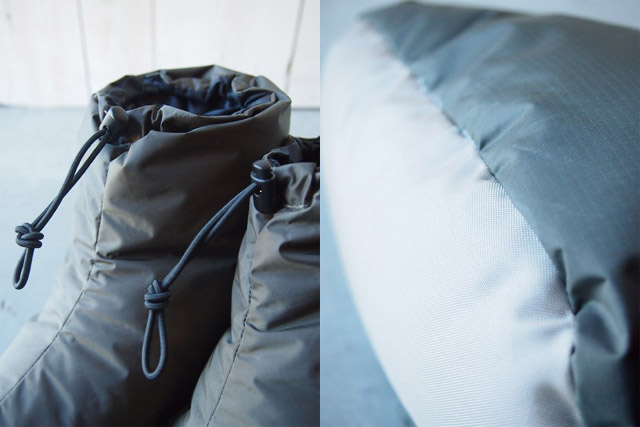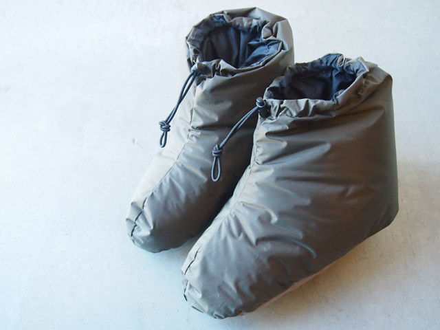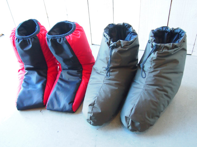 新しく取り扱いを始めた“TENT SHOES SHORT”(上写真右⇒■)は中綿量80gと“TENT BOOTS”(上写真左⇒■)に比べ20g多いにもかかわらず、総重量は160gとTENT BOOTSより30g軽い仕様。