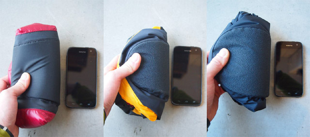 方足丸めてみましたが、意外とどれも収納サイズは似通ったものでした。