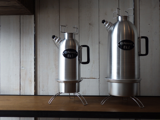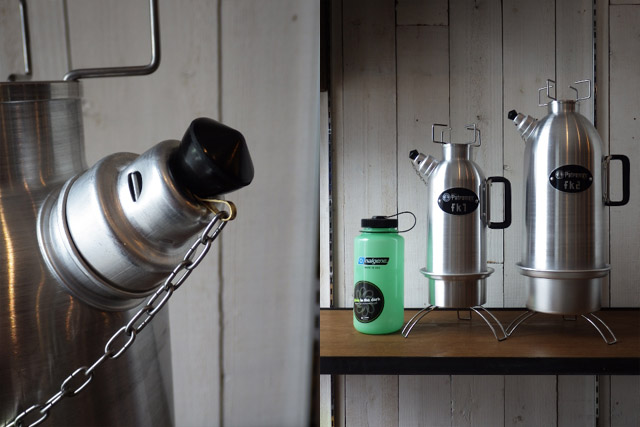 宇宙船の模型かと思ってしまう変わった形の“ファイヤーケトル”(⇒■)は簡単に言うと、やかんの機能を持ったネイチャーストーブ。