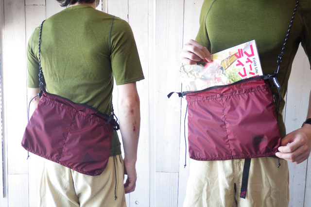 当店取り扱いのサコッシュ中で最も面が大きく、A4の雑誌もぴったり収まるsil sacoche(⇒■)。