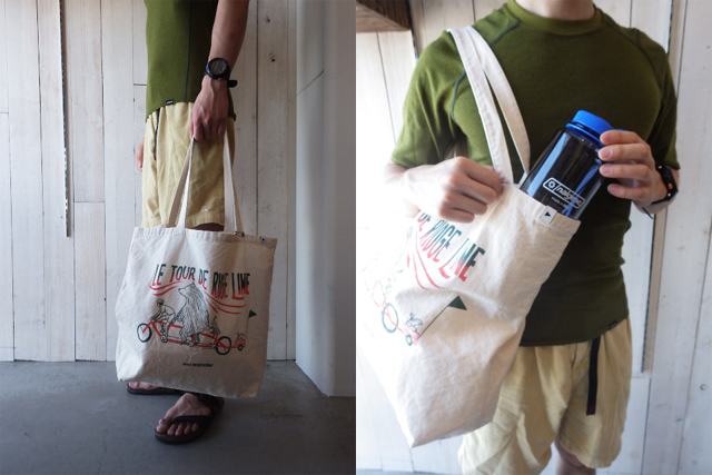 微笑ましいイラストがプリントされた、“canvas eco bag”(⇒■)。