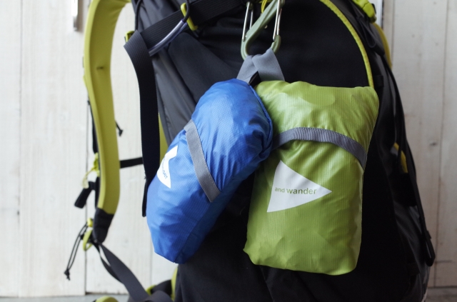 and wanderの最初期からラインナップされ続けているアイテムで、雨が降ったときはザックのレインカバーに、