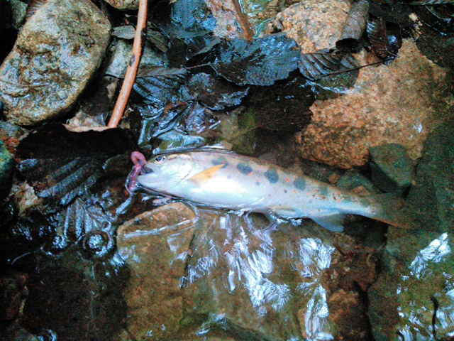 写真はというと釣りに夢中になってしまい、唯一最初に釣り上げたアマゴのみ。(スミマセン)