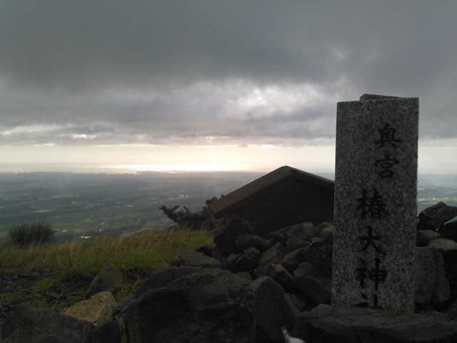 登頂時は曇りで小雨がパラついてましたが鳥居越しに見る金色の伊勢湾はなかなか神々しかったです!