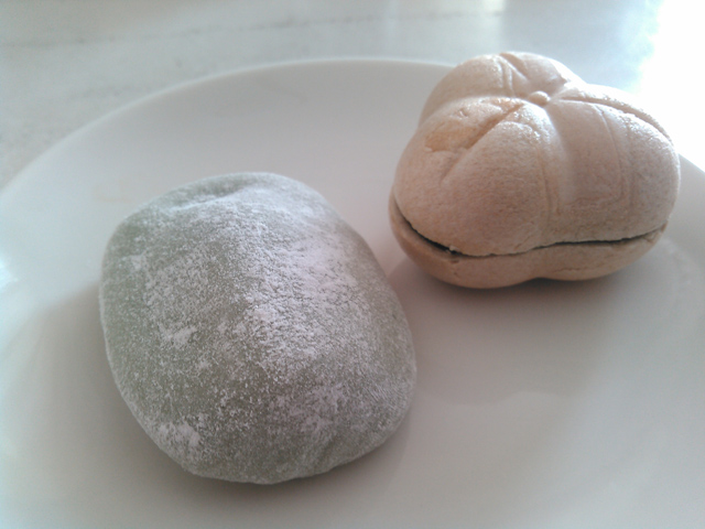 前日の朝のローカル番組で取り上げられ存在を知り、急遽予定に組み込んだ和菓子処松屋さん(⇒■)にて、名物の草もちともなかを購入!