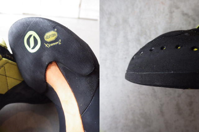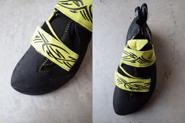 とにかく掻き込みにも強く、強傾斜の遠いホールドを取りに行くときなどは、最後まで足を残せます。