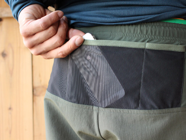 こちらのショーツにも、背面にポケットが3つに分かれ施されております。