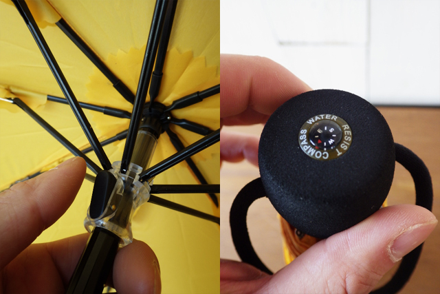傘を閉じる時にだけボタンを押しますが、その感触はなかなかいいもんです!笑