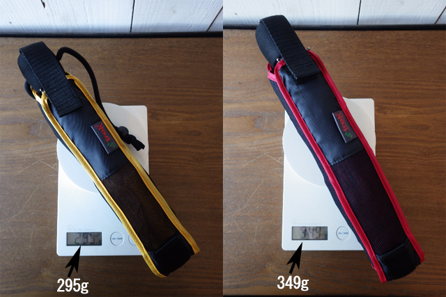 これによりおよそ50gの軽量化で300gを切る重量に(写真左)。