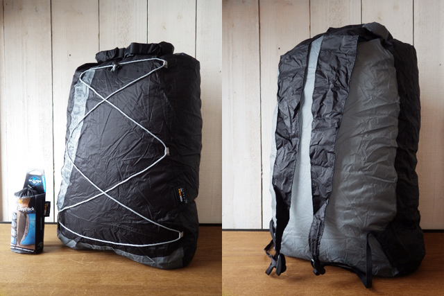握りこぶしサイズに収納可能で、ザック内ではドライサックとして、街ではエコバッグとしも使えてしまう優れもの!