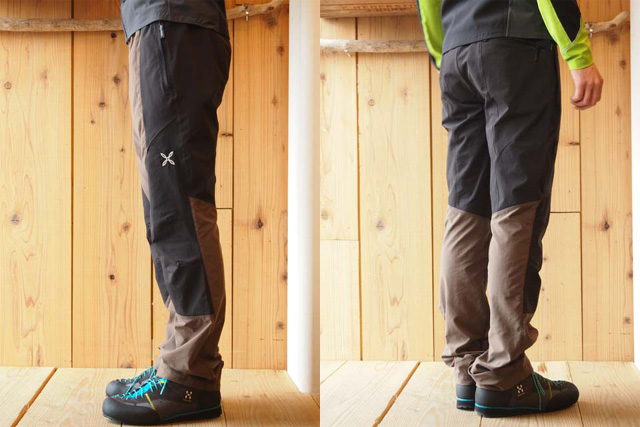 細くて美しいシルエットにも関らず随所に見られる立体裁断のお陰で、屈伸運動や困難なムーブでも全くといっていいほど動きを制限されることの無い、極めて精巧に作られたアルパインパンツです。