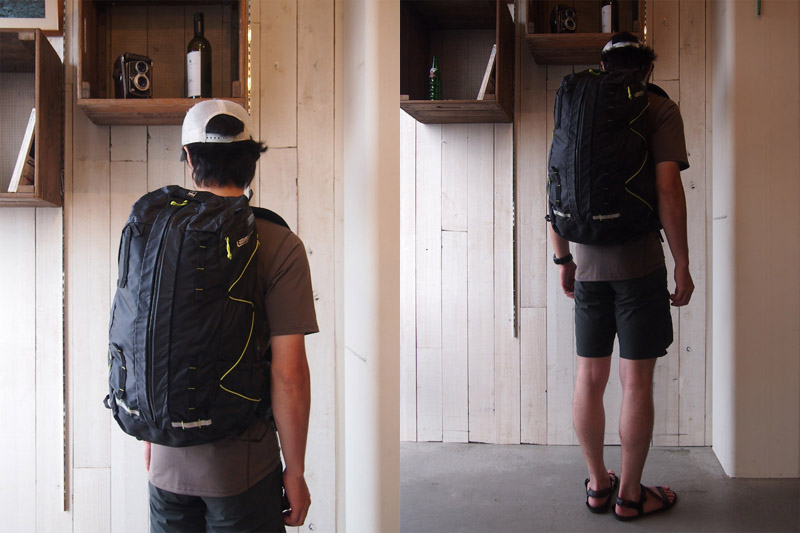 35Lは数日間の野営道具一式含めたファストパッキングなどのスタイルが目安になってくるかと思います。