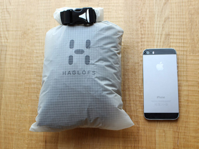 こちらは、スタッフサック、パッカブル共に御座いませんので、HAGLOFSの2Lのドライスタッフサック(⇒)に収納しております。